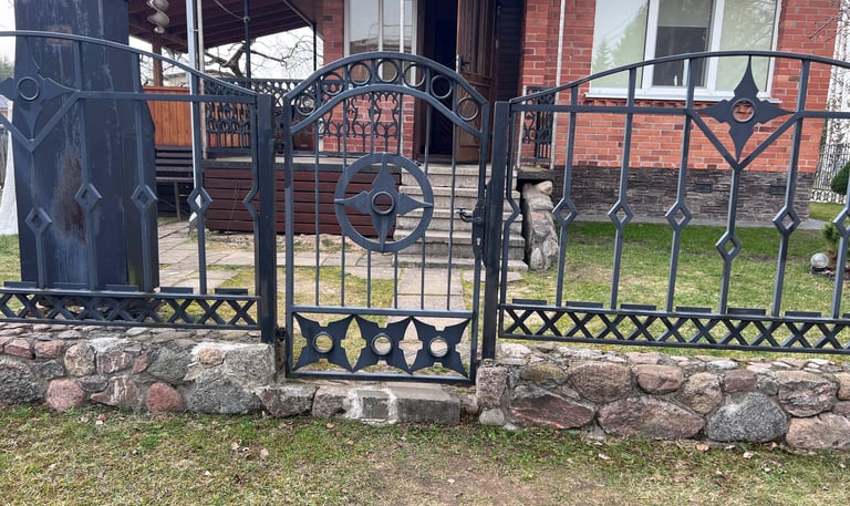 galima užpildyti labai įvairiai, jos gali būti tokios pat kaip ir kiemo vartai ar segmentai, suteikiantys vientisumą visai tvorai.